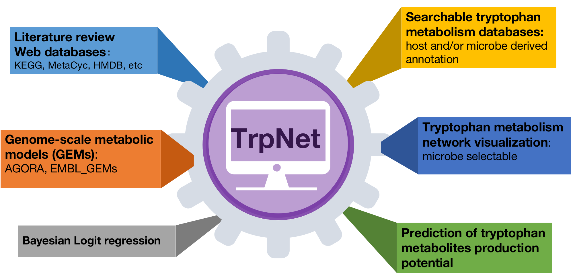 TrpNet is a comprehensive resource for researchers to visually explore, search, or predict tryptophan metabolism within the context of human and mouse gut microbiome. Its key features include